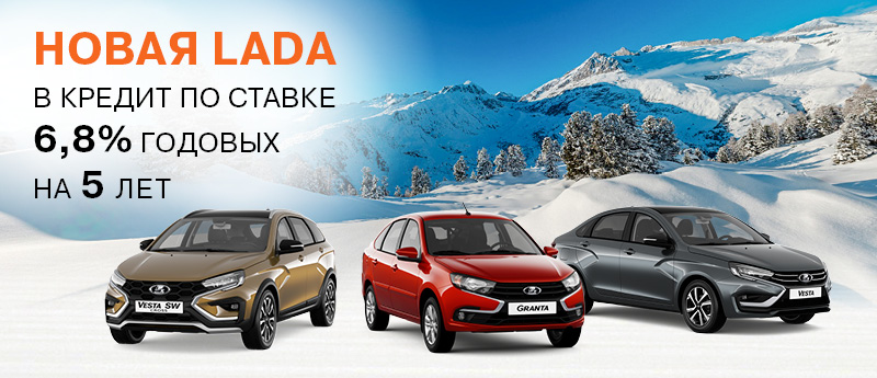 Кредит по ставке 6,8% годовых на 60 месяцев распространяется на приобретение LADA Granta при первоначальном взносе 70% от стоимости автомобиля Кредит по ставке 0,01% годовых до 36 месяцев распространяется на приобретение LADA Granta при первоначальном взносе от 40% от стоимости автомобиля Кредит по ставке 15,7% годовых на 60 месяцев распространяется на приобретение LADA Vesta, при первоначальном взносе 60% от стоимости автомобиля Кредит по ставке 0,01% годовых до 12 месяцев распространяется на приобретение LADA Vesta.при первоначальном взносе от 80% от стоимости автомобиля Кредитные продукты предоставлены банком АО «Автофинанс Банк»